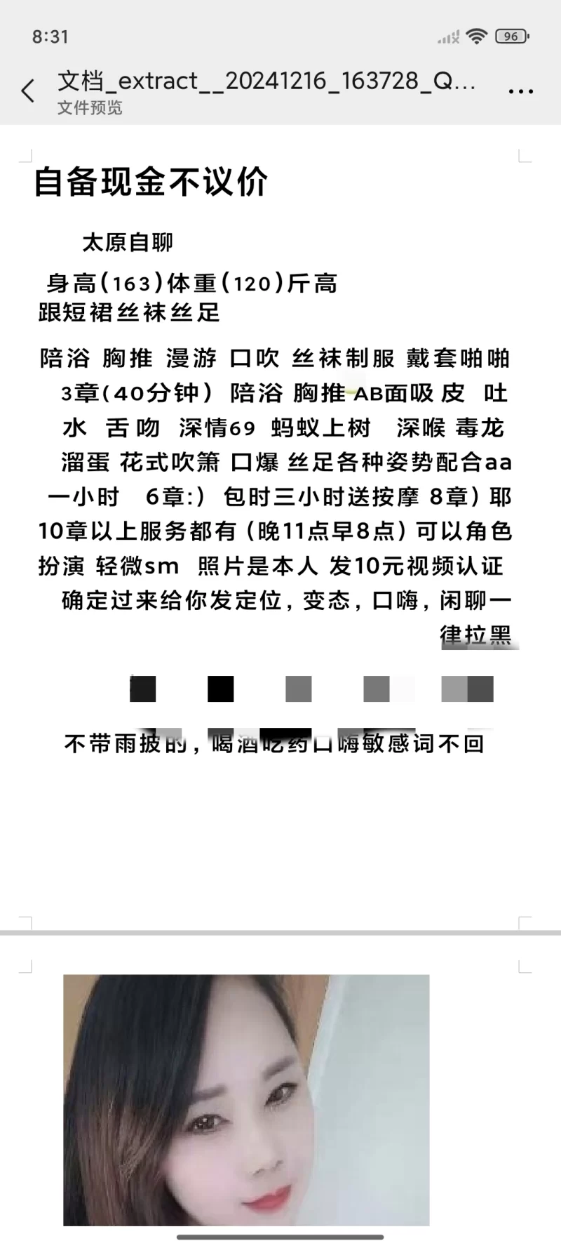 颜值身材: 颜值还行吧,与图片描述差不多一致